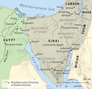 Setting: The vast desert of the Sinai region, as well as lands just south and east of Canaan