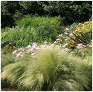 Spacing – if you put them together you can choose to put them 6’ or 8’ apart. Or 5’ would give 1’ between each one. They look good alone or massed two or more together. Care & Maintenance: very little – just trim back if you want them to be more compact.