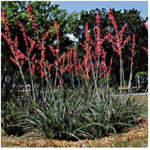 Benefits: drought tolerant (can live off central TX rainfall –as little as 10 inches a year) attracts humming birds, deer resistant, nice flowers spring-summer Needs little to no fertilizer, survives our winters. Evergreen Can find at all garden stores, Home Depot, Lowes, etc.