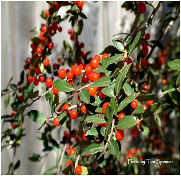 Benefits– all are tough, evergreen, interesting foliage and turn red in the winter (a very nice effect when everything is brown) Can survive in our Texas climate with our natural rainfall. Water to get established the first year. Not as deer resistant and the other plants listed here. Not a humming bird or major butterfly attractor but its winter foliage makes up for that.