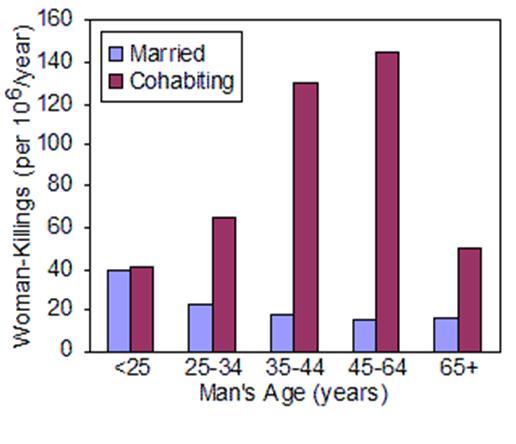 A nation-wide study of over 400,000 homicides committed between 1976 and 1994 calculated the rate of murders of women by her romantic partner.9 It was found that the incidence of was nine times higher in women who cohabited with men than those who were married.