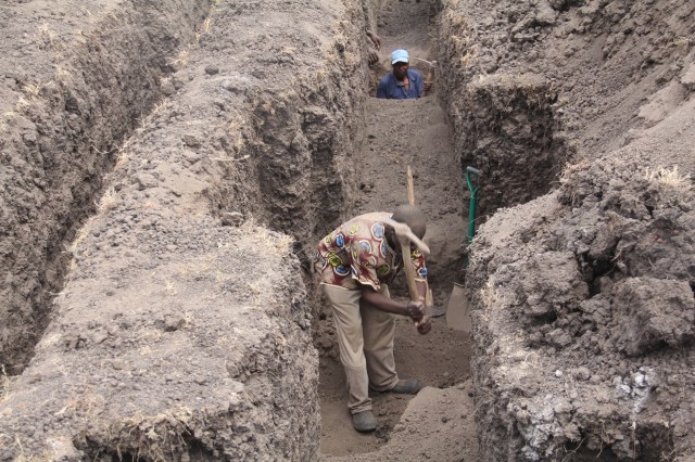While we were there they were getting ready to add a building for classrooms and a library. They hired men to dig the foundation beams. All work was done by hand. The men you see are making $3 a day for this type of labor all day long for several weeks.