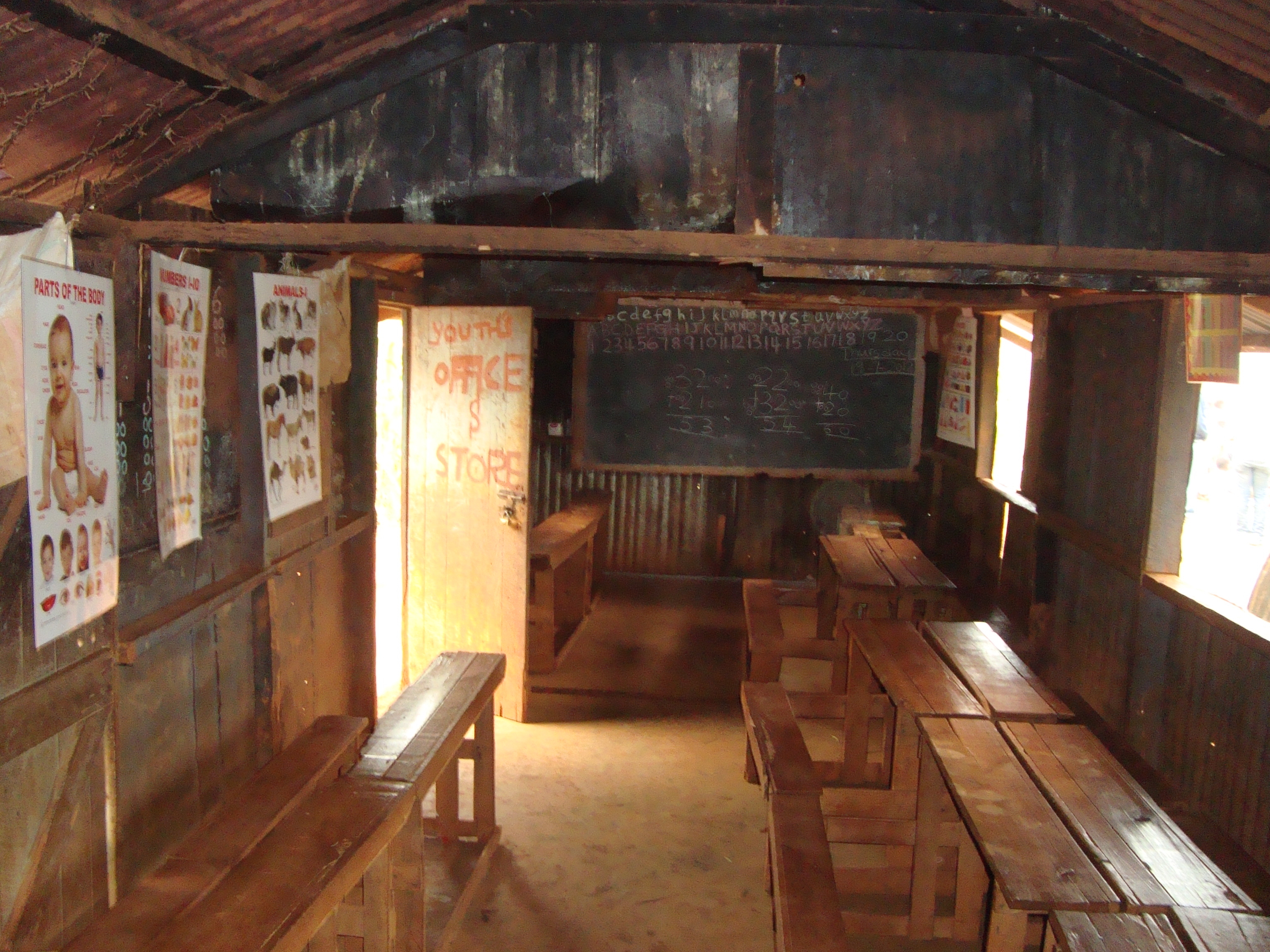 What do you notice? How about no lights, no electricity and no space! This class room has several ages grouped together in a 12×30 space. What would your local PTA say about this?