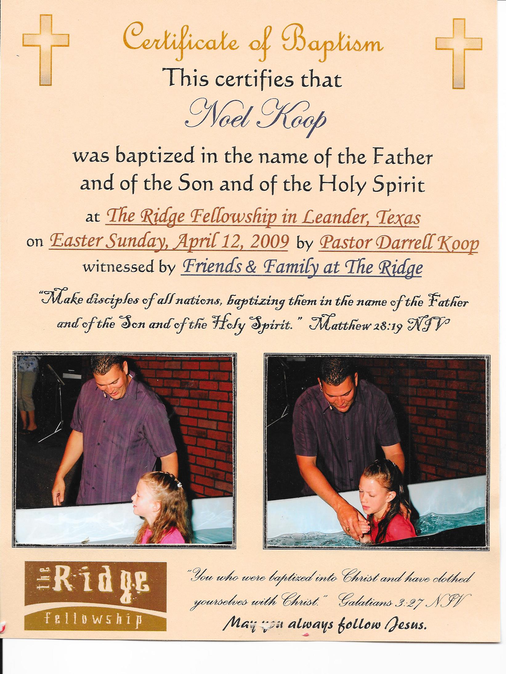 How can I remember my baptism? We take your picture and it has your certificate with your name and I sign it. This is to help you remember your baptism. We also give each person baptized a Life Application Study bible and a ” black Upward – “Father, Son & Holy Spirit” shirt.