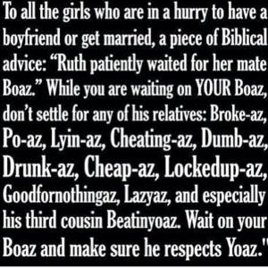 - Ruth waited for Boaz to work (Ruth 3:18)