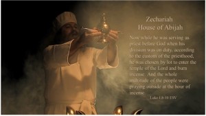 Zechariah served in the priestly division of Abijah. Priests were divided into 24 divisions, which we can read about in 1 Chronicles 24. Each day 56 of the 300 Priests in their division were chosen by a lottery who would serve in the temple. It